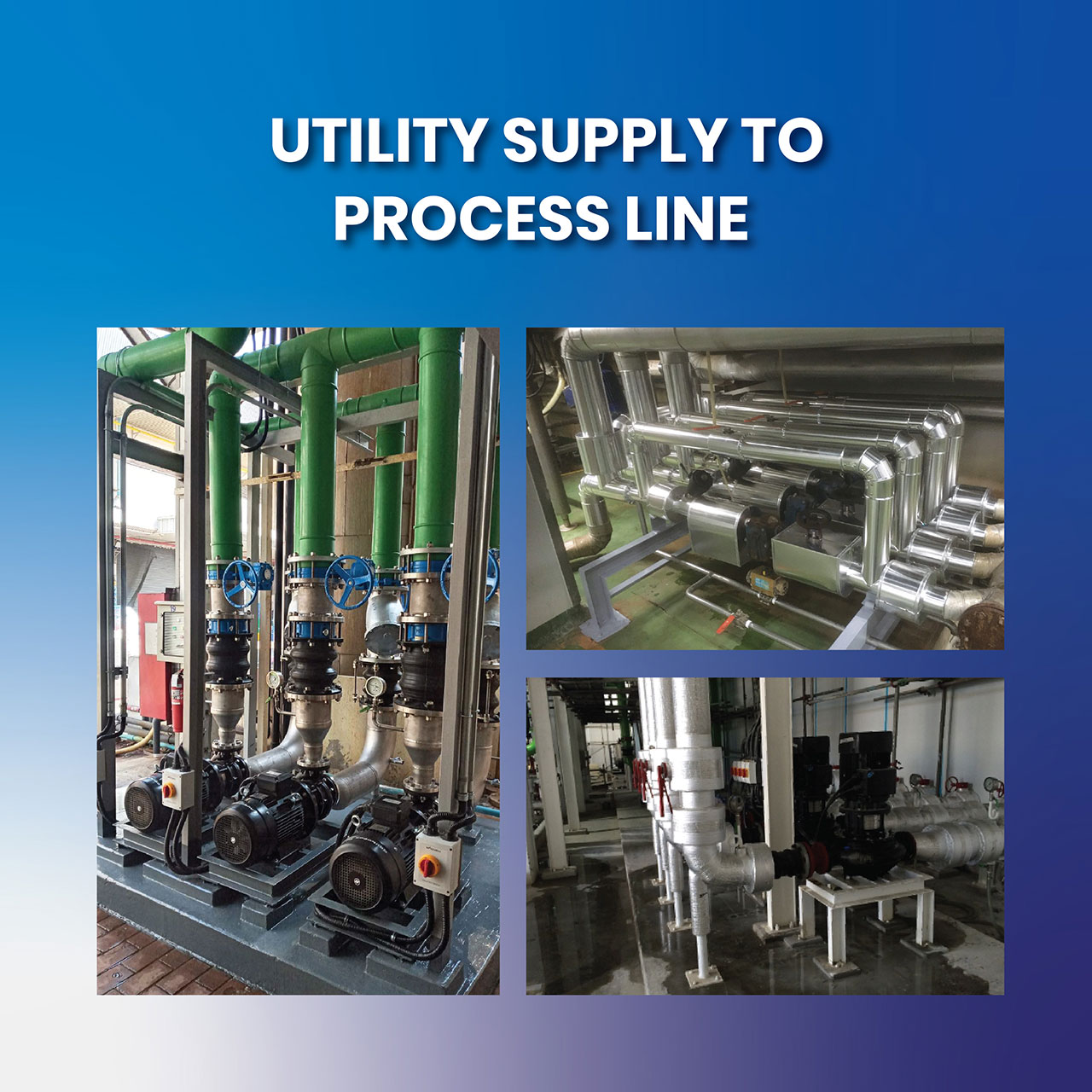 • ระบบน้ำหล่อเย็น น้ำร้อนจากไอน้ำ ลมอัด น้ำจากหอหล่อเย็น และอื่น ๆ